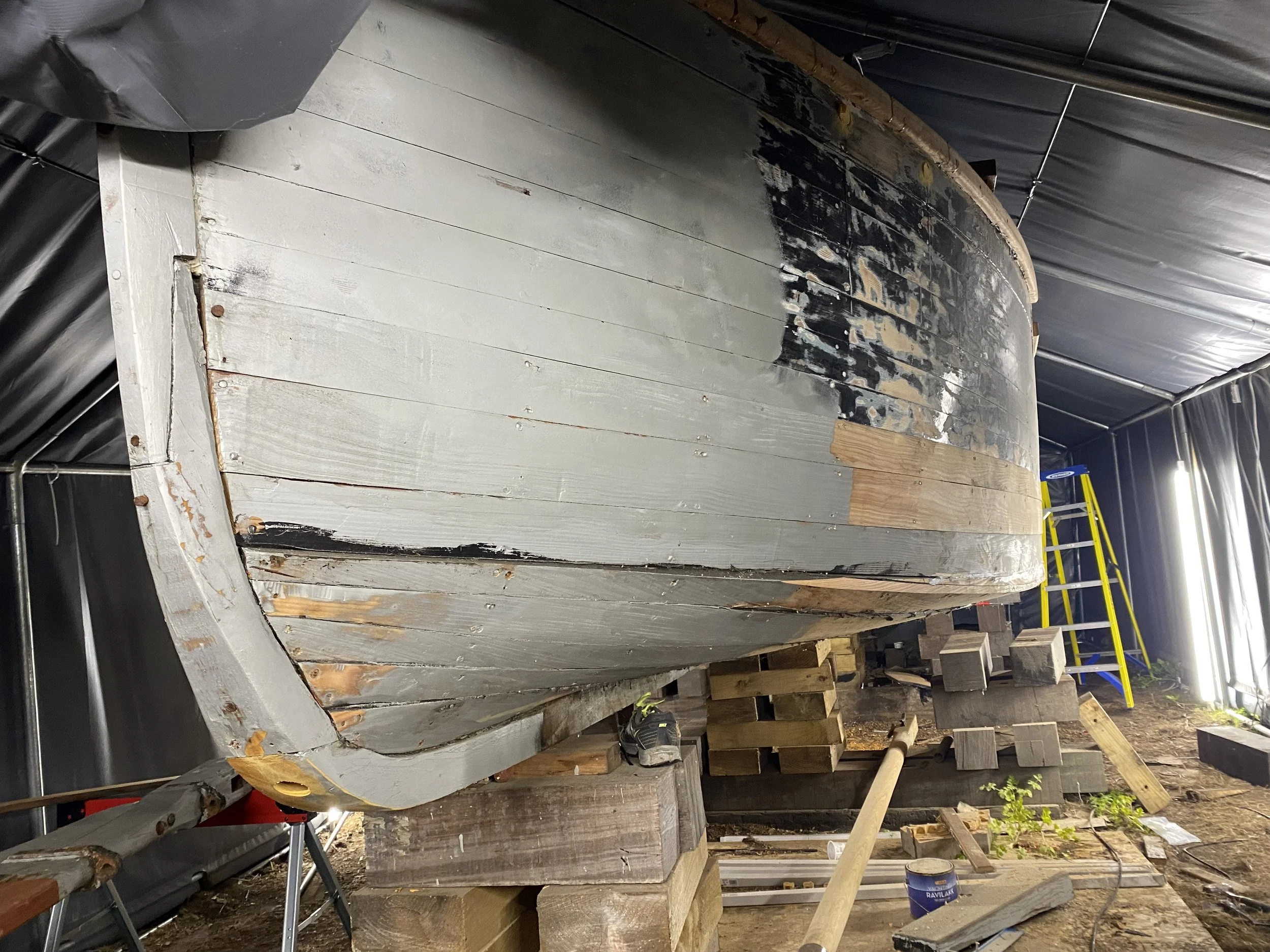 Growler is a 102 year old sailing barge. We found her in a barn in Suffolk in 2018. We then embarked on a major crowdfunded rebuild raising £50,000 to restore her to her former glory. This has involved replacing almost 80% of the vessel. We very much hope to get afloat in the Spring of 2023. Once afloat we will use her to teach sailing and ship cargo under sail.